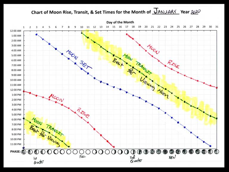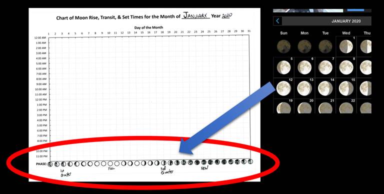 transit/”meridian passing” for each day of the month on the chart. Plot this in GREEN.